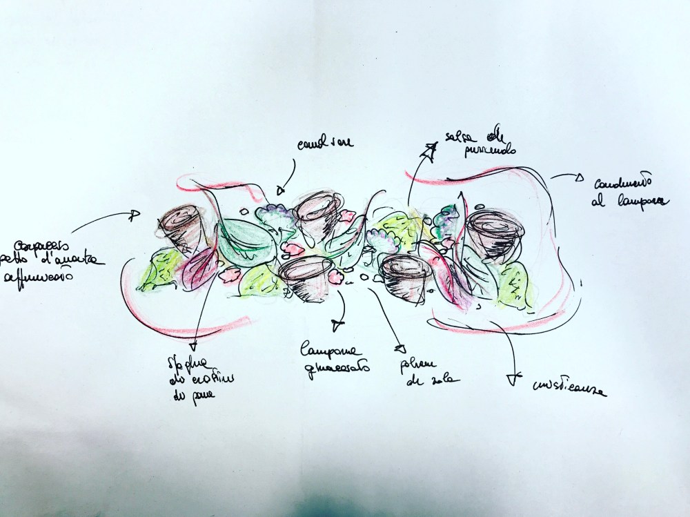 Io ho giocato molto con i colori utilizzando foglioline colorate e fiori eduli e ,dato che il petto d’anatra è molto grasso, ho preferito non aggiungere olio ma ho preparato due salse: una fresca e l’altra acidula