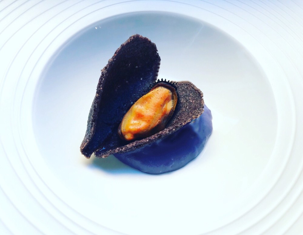 E’ nata quindi questa idea dell’amuse bouche (un piccolo antipastino) dove ho sostituito il guscio della cozza con una cialda croccante di riso.
