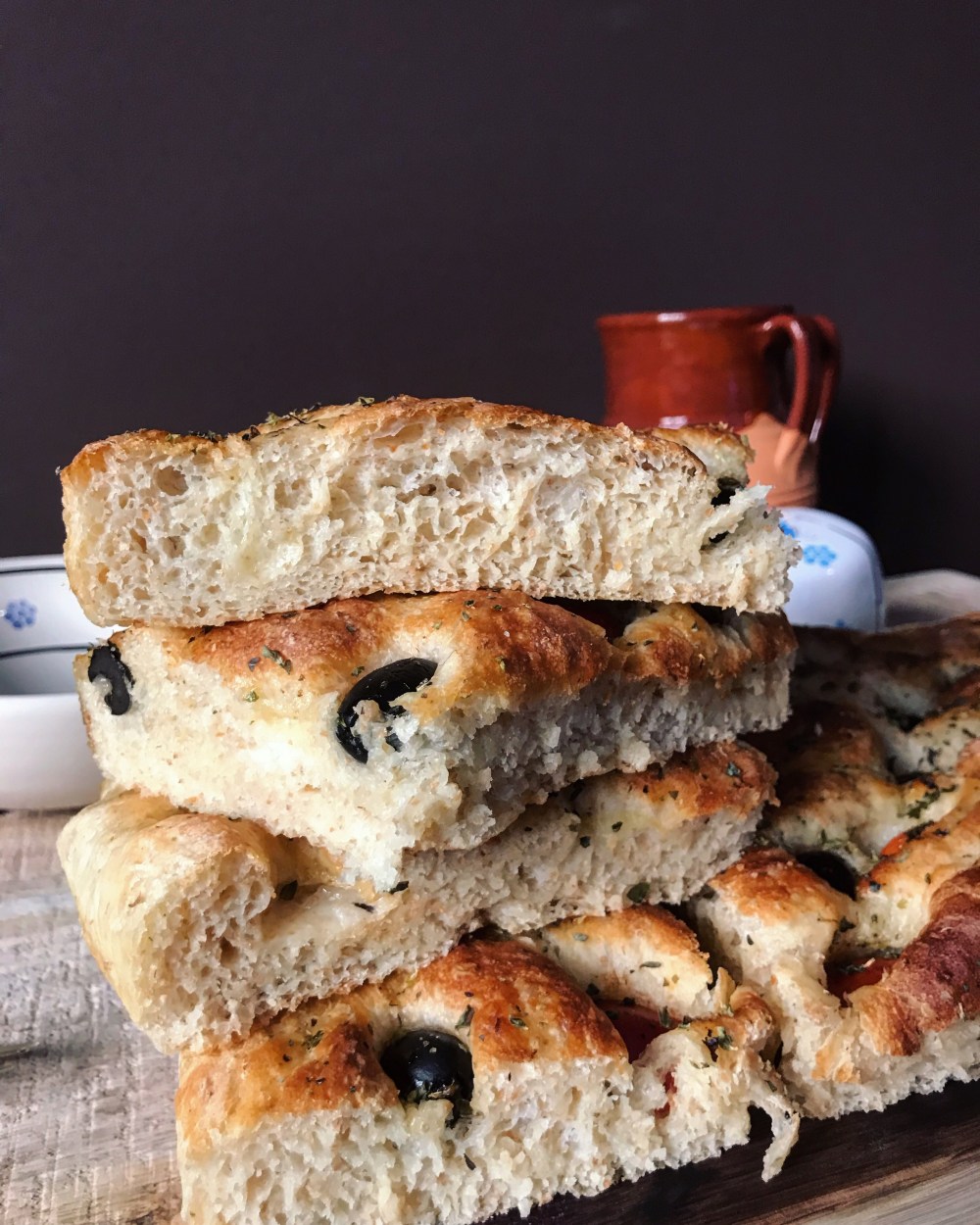 Tra i miei preferiti c’è la focaccia. Il profumo che emana e la “sofficiosità” dell’impasto mi mandano in brodo di giuggiole!