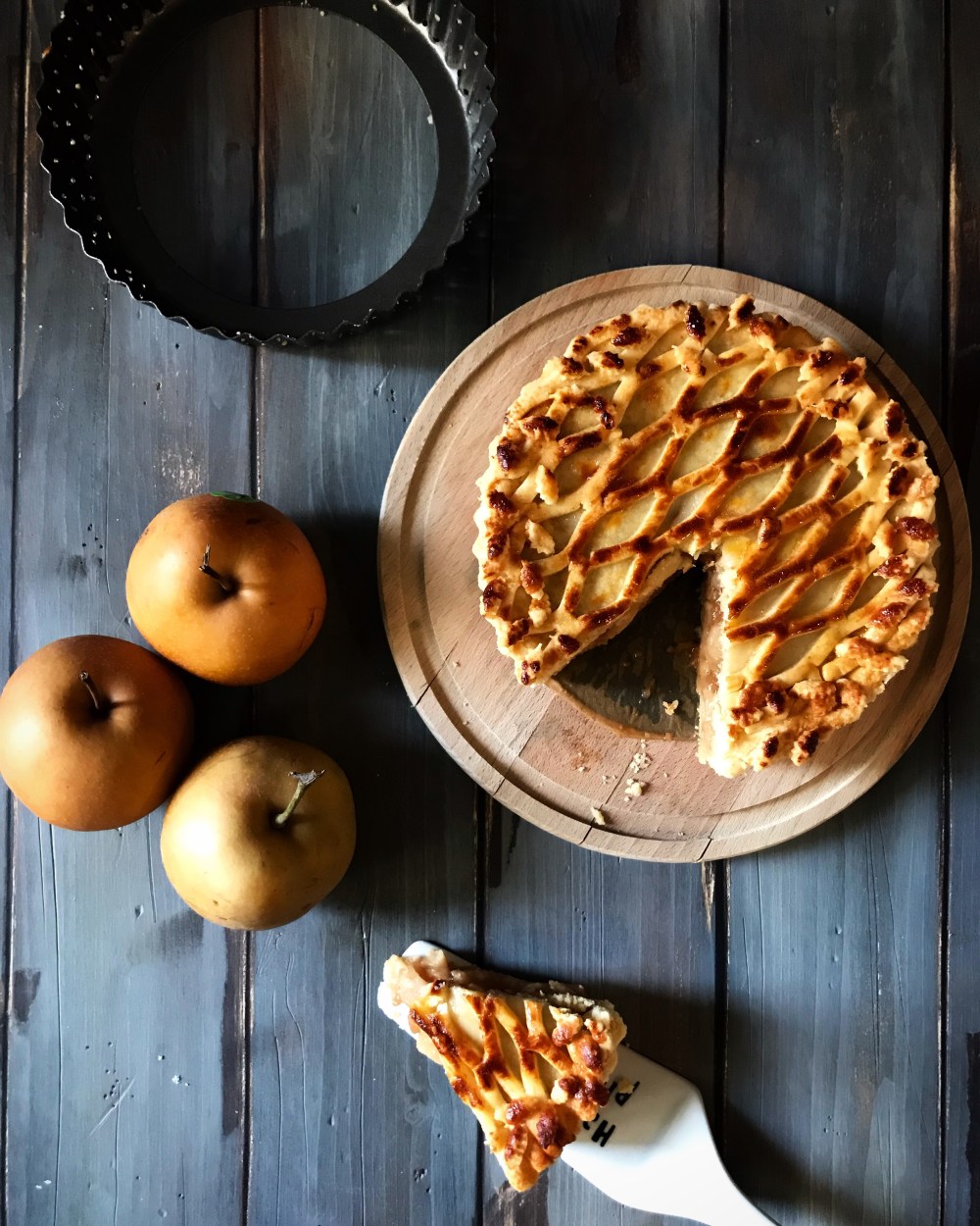 La mia amica Paola, sempre attenta al cibo genuino, mi ha fatto conoscere le Pere Nashi, un misto perfetto tra pera e mela. Sono originare del Giappone, hanno una polpa molto simile alla mela ma con il sapore dolce delle pere. Io me ne sono innamorata e o voluto sperimentare una classica Apple Pie americana utilizzando questi frutti. La resa è fantastica. Ovviamente le classiche mele sono ugualmente perfette, ma se le trovate io vi consiglio di provarle perché ne vale la pena.