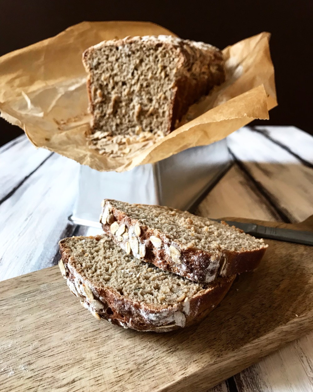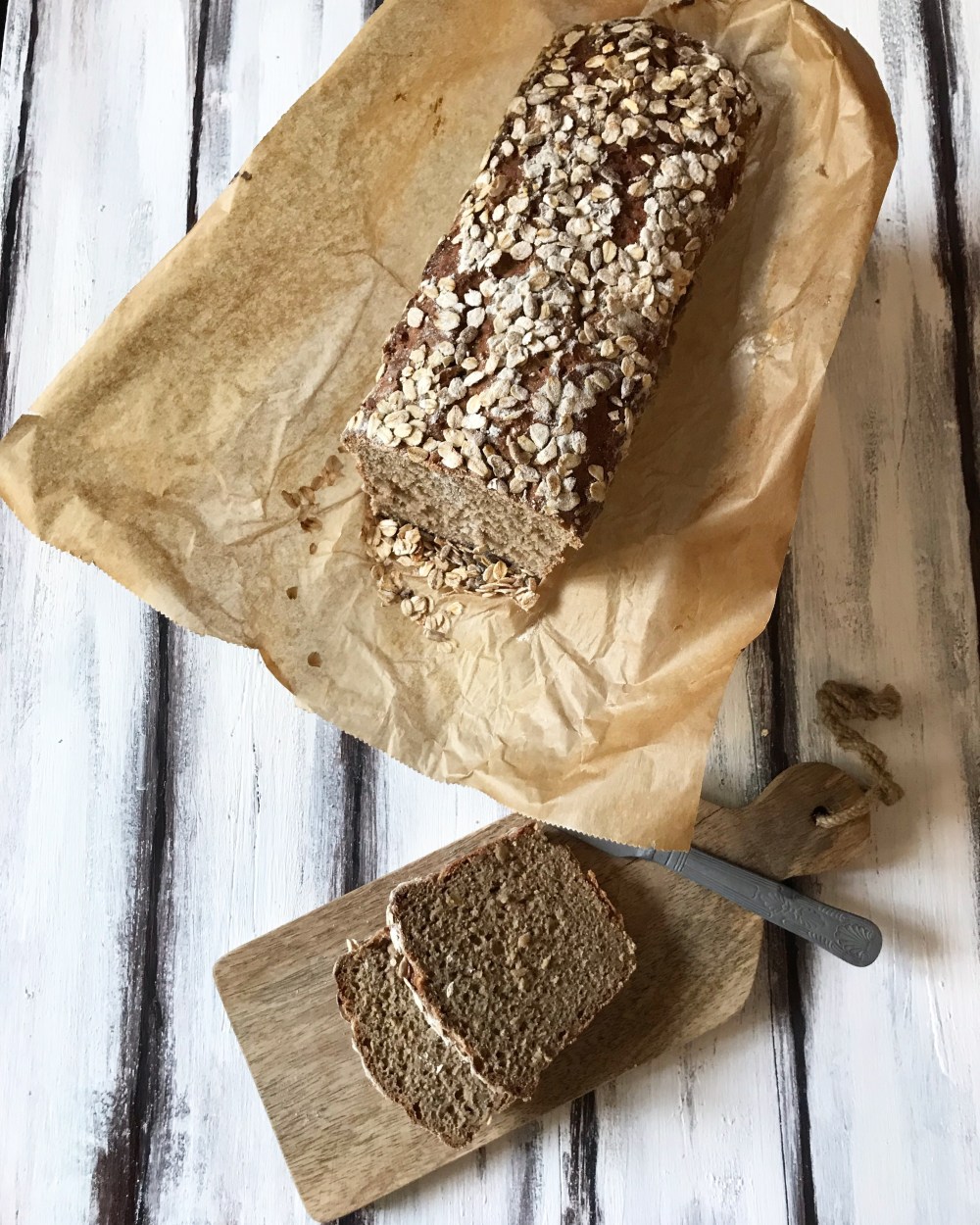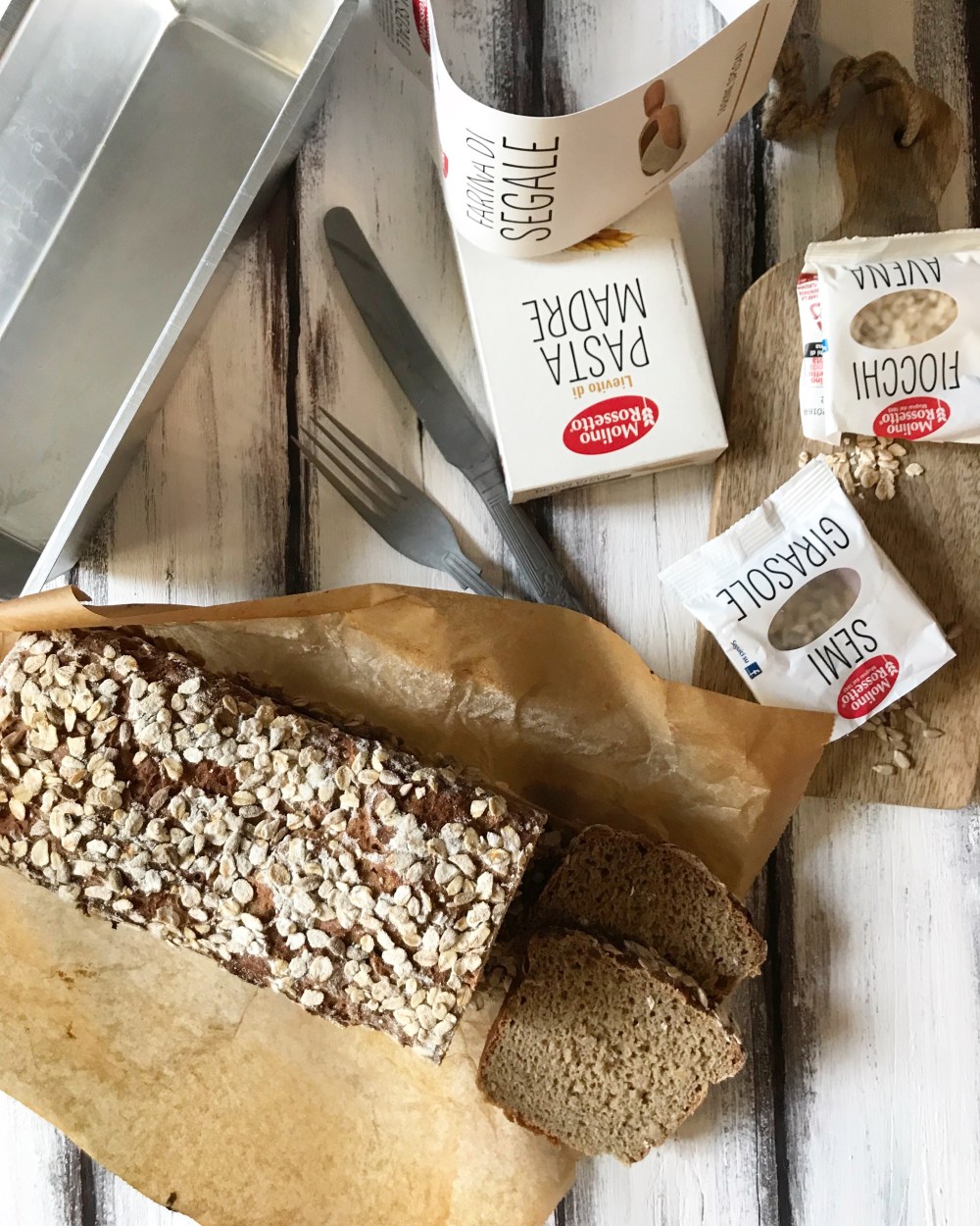 Trascorso il tempo necessario trasferite l’impasto in uno stampo per plumcake precedentemente rivestito da carta da forno, cospargete la superficie con i fiocchi d’avena, coprite con la pellicola lasciandola abbastanza morbida e lasciate lievitare per altre 2 ore. Infornate a 250° per 10 minuti, poi abbassate a 180° per altri 20 minuti e infine a 160° per 10 minuti. Lasciate raffreddare completamente prima di tagliare il pane.