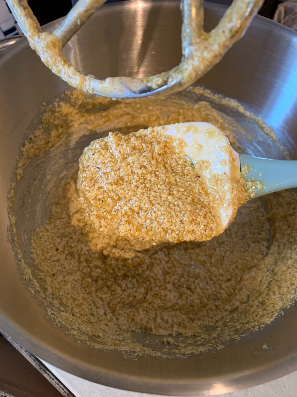 In una ciotola versate la farina, il lievito, le spezie e mescolate. Nella planetaria, con il gancio foglia, lavorate il burro fino a quando sarà morbido, aggiungete lo zucchero e continuate a montare per circa 5 minuti, avendo l’accortezza di raschiare con un lecca pentola la crema che si ferma sulle pareti della ciotola. Aggiungete le uova una alla volta, lavorando bene l’impasto tra l’una e l’altra. In questa fase è meglio manette la velocità medio/bassa. Si formerà un impasto dall’aspetto cagliato.