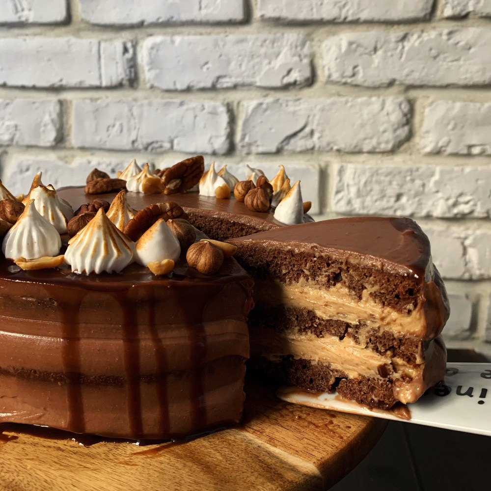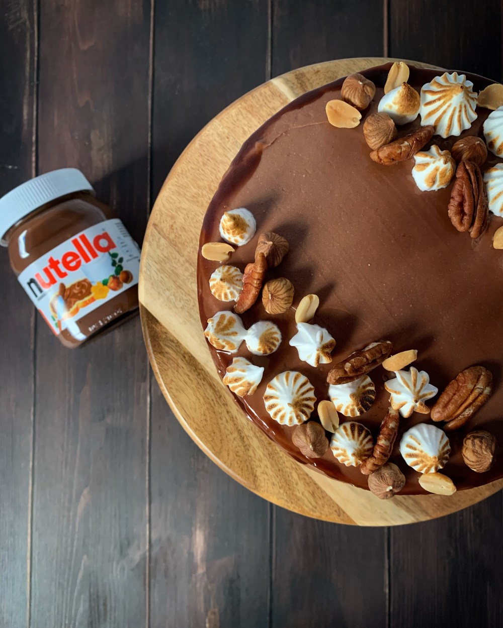 Togliete la torta dal frigo e ricoprite con la crema di mascarpone e nutella(dovrete solo mescolare in due ingredienti). Per la copertura le dosi sono indicative, se vi piace più nutellosa aggiungetene ancora. Con l’aiuto di una spatola livellate bene e rimettere in frigo per almeno 3 ore prima di servirla.