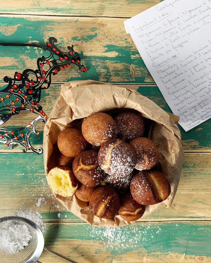 Le castagnole mi ricordano l’infanzia. Nonna Pina preparava sempre per l’occasione queste palline golosissime. Le adoravo e le adoro tutt’ora perché non sono estremamente dolci e hanno una consistenza che crea dipendenza! Questa che vi riporto è la sua ricetta, scritta direttamente da lei!