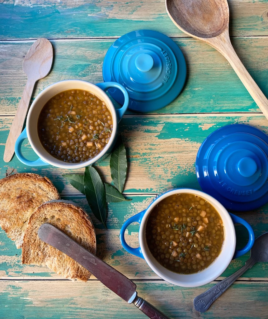 La zuppa di lenticchie fa parte delle ricette di confort food che amo particolarmente. Tra l’altro è semplicissima da preparare e praticamente si cuoce da sola!