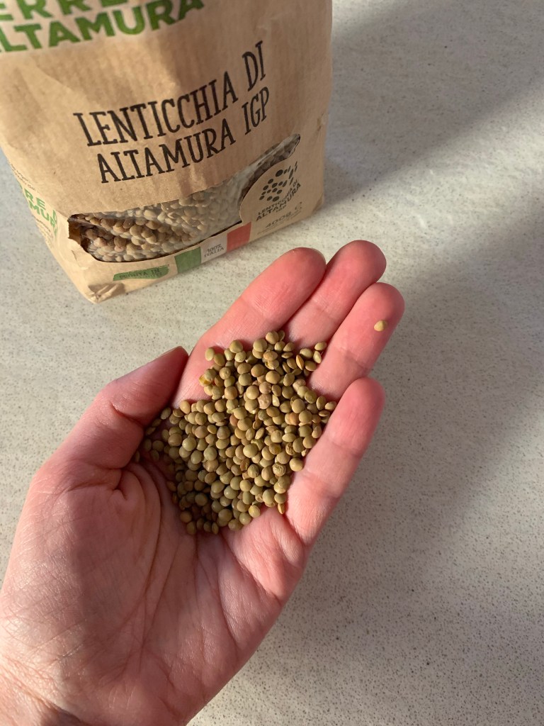 Io utilizzo le lenticchie di Altamura, non c’è bisogno di metterle a bagno e hanno un tempo di cottura piuttosto breve. Quindi a seconda della qualità che scegliete, leggete le modalità d’impiego