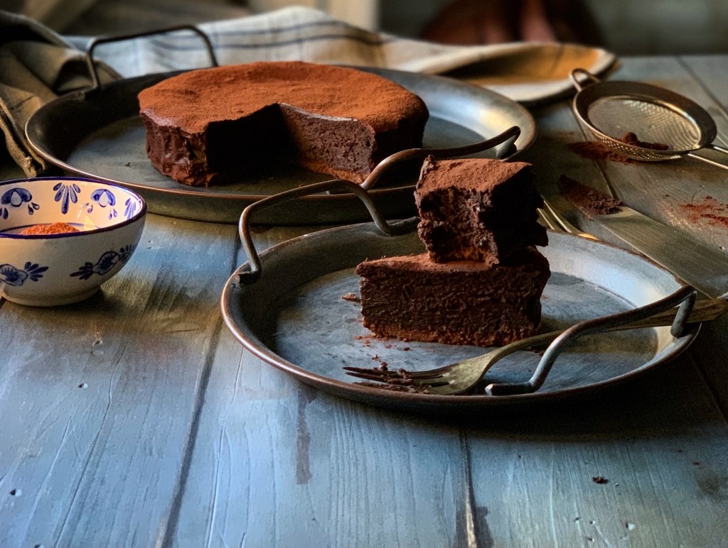 Una torta dedicata agli amanti del cioccolato, cremosa e golosissima! La cosa più bella è che si prepara in pochissimi minuti. Io l’ho aromatizzata col peperoncino e rum ma volendo potete non metterli e sostituire il cioccolato fondente con quello al latte per un gusto più delicato.