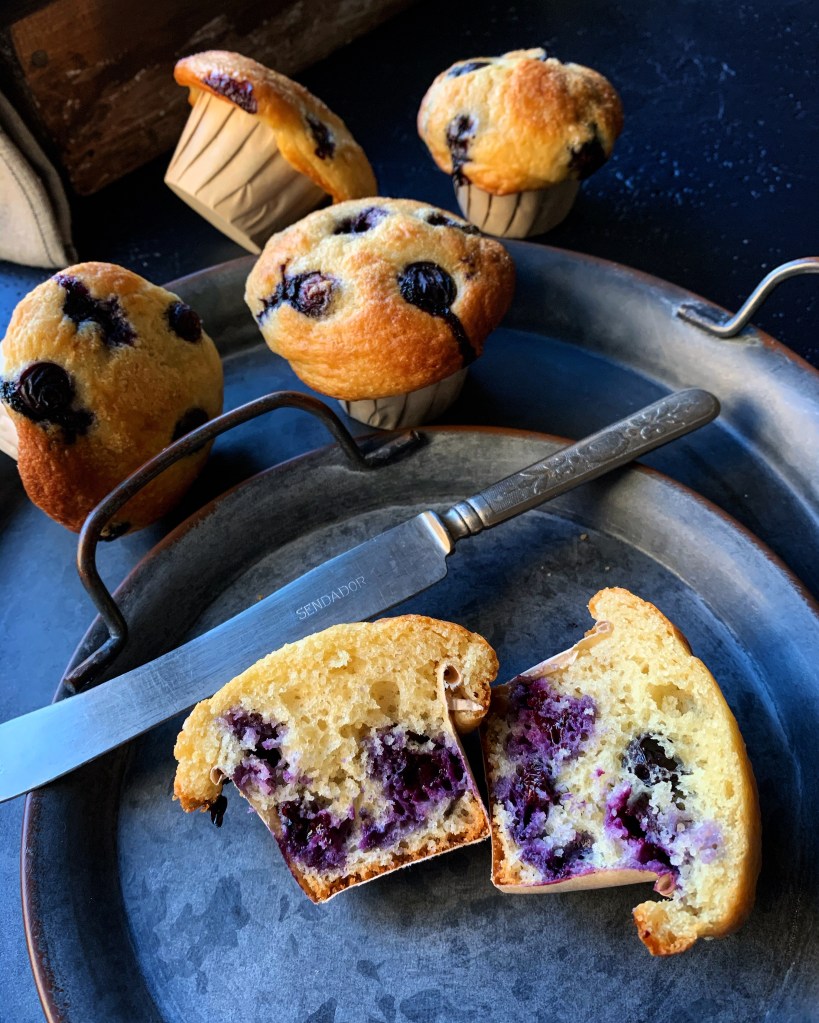 Riempite i pirottini aiutandovi con un cucchiaio, adagiate due o tre mirtilli freschi sulla superficie e, se volete una crosticina più croccante, cospargete poco zucchero di canna. Infornate a 180° in modalità ventilata sul ripiano medio basso del forno per 15 minuti, poi spostate sul ripiano più alto del forno per altri 5 minuti.