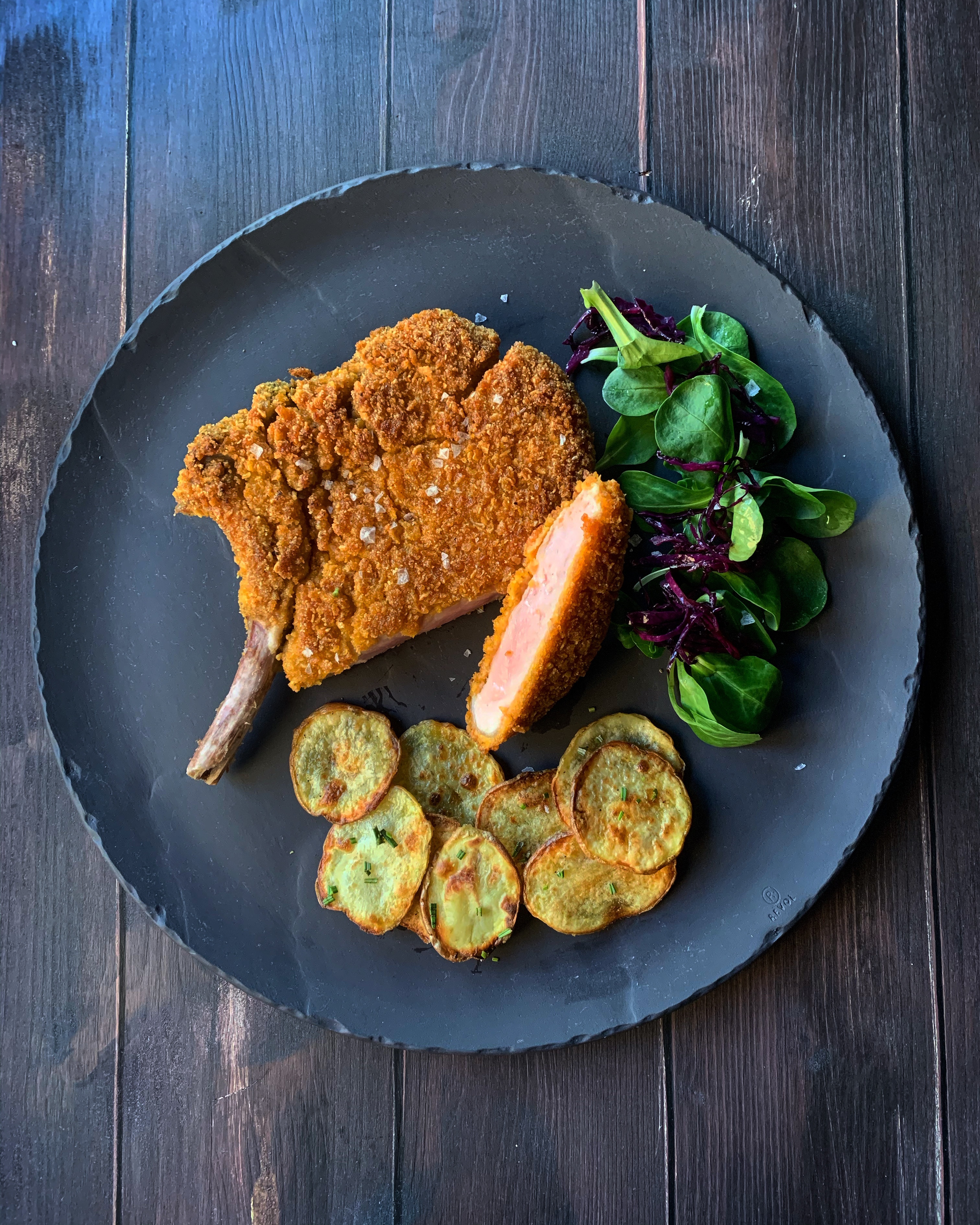 La cotoletta alla milanese, è uno dei piatti simbolo della cucina meneghina. Esiste sia la costoletta, che è la costata di vitello con l’osso (quella che preferisco), sia l’orecchia di elefante. Si tratta del medesimo taglio di carne, privato dell’osso e battuto fino a farne una bistecca sottile e davvero molto grande. La tradizione vuole che si debba cuocere in abbondante burro, e secondo me le conferisce davvero quella marcia in più, ma se preferite, potete friggerla in olio.