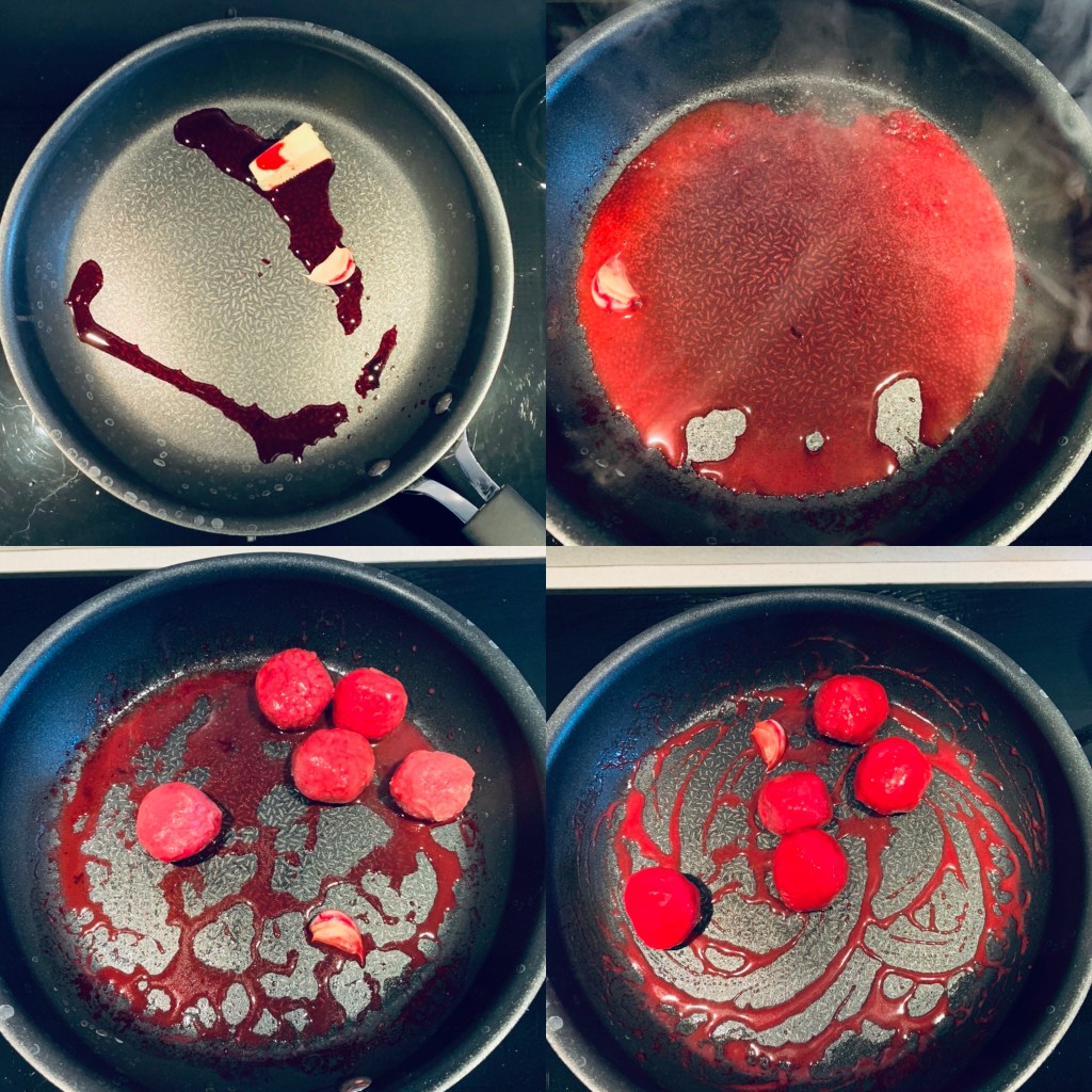 Portate a ebollizione l’acqua salata e immergete pochi gnocchi per volta. Intanto in un padellino antiaderente versate contemporaneamente il burro, il succo di barbabietola e uno spicchio d’aglio. Accendete la fiamma. Non appena gli gnocchi saliranno a galla prelevateli con una schiumarola e trasferitevi nella padella con burro e succo di barbabietola. Se necessario allungate con poca acqua di cottura. In questo modo gli gnocchi avranno un colore acceso.