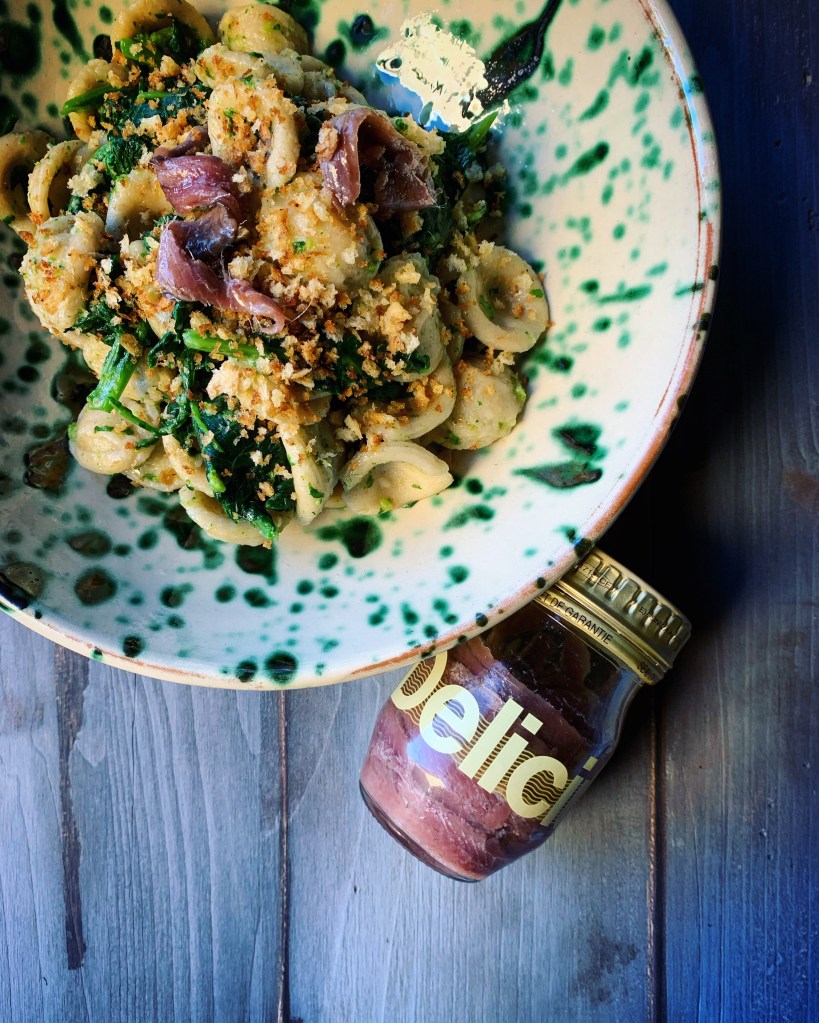 Impiattate e spolverate con la mollica fritta e un paio di acciughe.