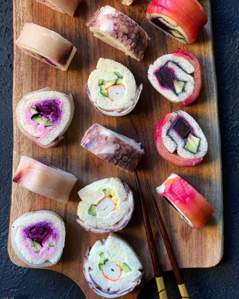 Tutti, o quasi, amiamo il sushi ma, si sa, non è esattamente veloce e in più bisogna abbattere il pesce prima dell’impiego. Ho provato quindi a fare del tramezzino e della tartina una variante degli uramaki. come pesce ho utilizzato i carpaccio affumicati che si trovano facilmente in commercio. Il risultato è strepitoso.