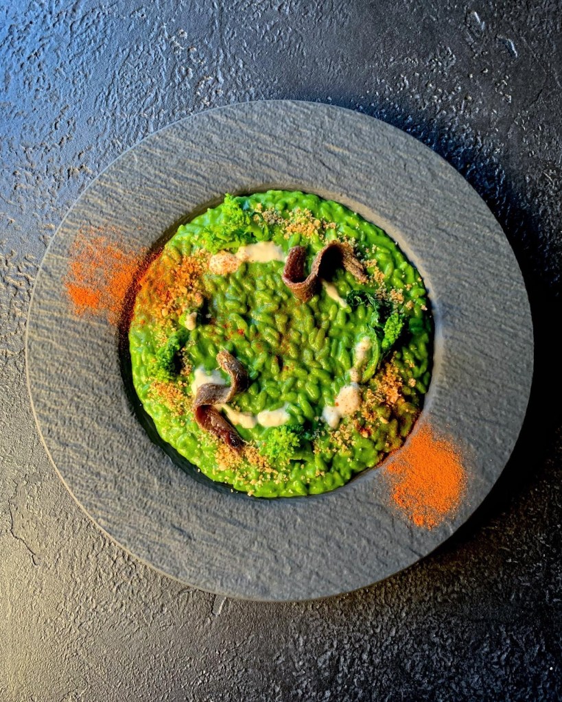 Una volta pronto, spegnete la fiamma e aggiungete una noce di burro. Mescolate fino a quando non sarà sciolto. Aggiungete quindi lo stracchino o il grana e mescolate per un paio di minuti. Impiattate, cospargete in superficie la mollica tostata, una o due acciughe e, se lo avete, il peperone crusco in polvere.